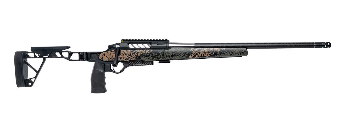 The ELEMENT HUNTER is specifically designed for the rugged, unforgiving terrain and extreme weather conditions found in the mountains. The Element Hunter features the Element M3 barreled action with our FIRST Carbon fiber barrel. Specifically designed and contoured for hunting. The Chassis is also designed specifically for hunters. This is NOT a tactical rifle slimmed down to save weight. This chassis has all of the fit, form, and feel of a traditional hunting stock, while offering all the modularity and features of a chassis-style rifle: folding, slim and snag-free stock perfect for packing and quick to deploy, adjustable cheek piece, full-length MLOK rail on a traditional style fore end, AND now Seekins Quick Change Barrel Collar allowing you to change calibers to meet your every hunting need.