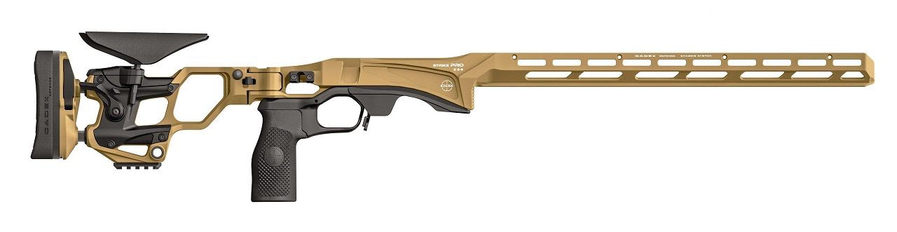 The Strike Pro is the latest addition to our extensive chassis line-up. It is the ultimate chassis for professional PRS shooters as well as for amateurs competing at regional matches. The Strike Pro combines all features needed for positional shooting games where every second matters. This competition chassis features a 17″ long built-in Arca Elite System (AES) rail, 10 M-LOK mounting slots at 3, 6 and 9 o’clock, a barricade stop, our PRO folding tool-free adjustable rear stock, a multi-position adjustable trigger guard, tunable height ambidextrous extended magazine latch and rubberized vertical grip. Popular optional items such as M-LOK weights, right/left thumb rest and full length night vision bridge can be purchased separately.